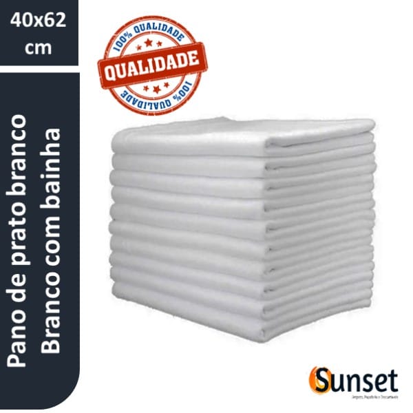 Pano de prato branco com bainha 40x62cm