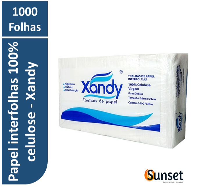 Papel toalha interfolhas celulose folha simples 20×21 c/1000 – Xandy